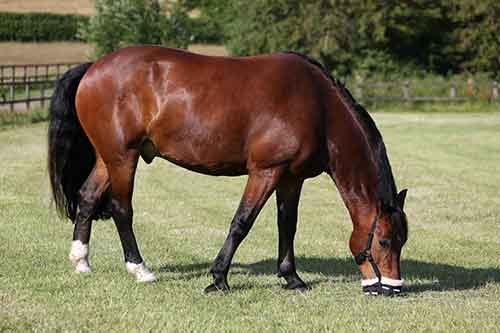 Ponies are renowned for being grass guzzling machines and have been seen to consume up to 5% of their bodyweight (dry matter) in grass per day when living out 24/7 – this equates to a whopping 12.5kg for a 250kg pony! Although intake in horses may be lower, some may well give ponies a good run for their money.